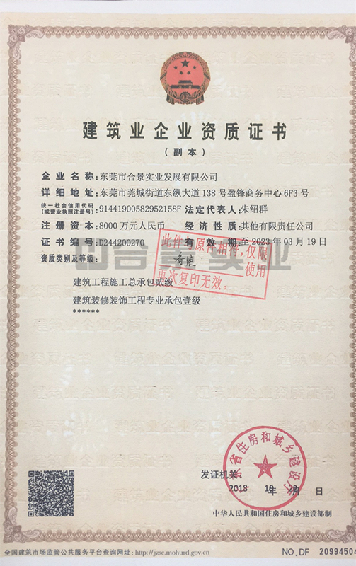 “建筑裝修裝飾工程專業(yè)承包壹級”是這個行業(yè)資質(zhì)的最高等級,代表著行業(yè)的崇高地位和國家相關(guān)部門的極大認(rèn)可。建筑施工企業(yè)資質(zhì)是建筑企業(yè)施工的資格證明,是企業(yè)承攬建設(shè)工程施工任務(wù)、參與投標(biāo)競爭活動的入場券,直接關(guān)系到企業(yè)在建筑市場中的競爭地位和優(yōu)勢,對企業(yè)的生存與發(fā)展有著重要的意義。